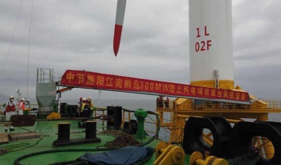 中国节能下属风电阳江公司积极贯彻落实集团公司、风电公司的工作要求,做细、做严、做实疫情防控和复工复产各项工作。3月8日,在各方支持和努力下,阳江海上风电项目首台5.5兆瓦风机吊装成功。