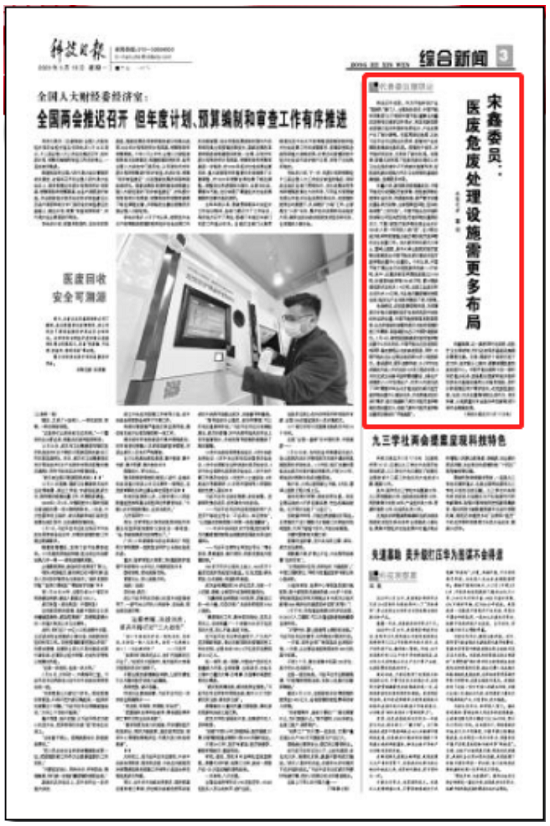 7.科技日报:宋鑫委员:医废危废处理设施需更多布局