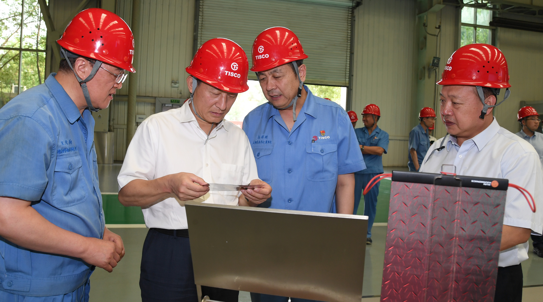 彭华岗参观了太原钢铁厂史展览馆、碳纤维生产线和不锈钢精密带钢生产线,详细了解企业发展历程、碳纤维和“手撕刚”生产等情况,对企业科技创新领域取得的成绩给予了充分肯定。